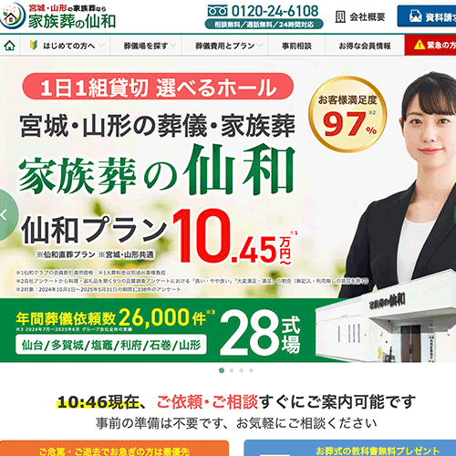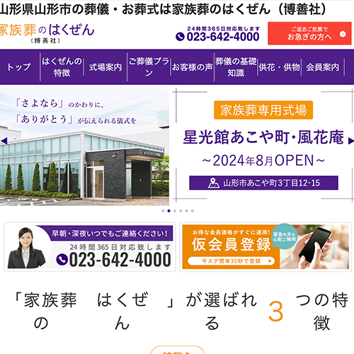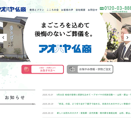 葬祭ディレクターなど有資格者が多数在籍。山形市中心部に複数の自社斎場があり、移動・アクセスが便利